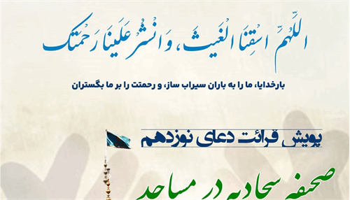 نظر به اینکه مساجد به عنوان پایگاه و ملجأ امت اسلامی در عسر و سختی ها و مرکز دعا و استغاثه از خدای متعال برای مرتفع شدن مشکلات می باشد. اکنون که سرزمین عزیزمان با مشکل جدی کمبود منابع آبی و عدم بارش رحمت الهی مواجه شده، به منظور استغاثه به درگاه خدای متعال با تمسک به دعای ۱۹ صحیفه سجادیه و کلام نورانی سید الساجدین امام زین العابدین علیه السلام نزول باران رحمت الهی را در مساجد از خداوند متعال مسئلت داریم. مساجد به عنوان پرچمداران این دعا و استغاثه جمعی از خدای متعال نسبت به قرائت دعای نوزدهم صحیفه که مسئلت و درخواست نزول باران رحمت الهی در کلام سید الساجدین حضرت زین العابدین (ع) است اقدام می نمایند . به همین منظور ائمه محترم جماعات در مساجد با قلب و زبانی خاشع و متضرع و هم نوا با نمازگزاران و مومنین نسبت به قرائت دعای نوزدهم بعد از نماز مغرب و عشاء اقدام نمایند. تا به یاری خدای متعال بلیه خشکسالی از میهن اسلامی رخت بربسته و نزول باران رحمت الهی شامل کشور عزیزمان گردد.